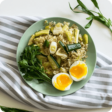 Rice, Zucchini, Olive oil, Garlic, Onion, Salt, Pepper, Fresh herbs